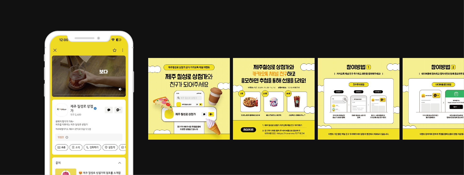 지역 상권의 디지털 전환을 지원하는 ‘카카오 단골거리’ 사업의 일환으로, 제주 대표 상권인 칠성로 상점가의 카카오톡 채널 인지도 향상 및 이용자 확대를 위한 온라인 이벤트를 운영했습니다.
